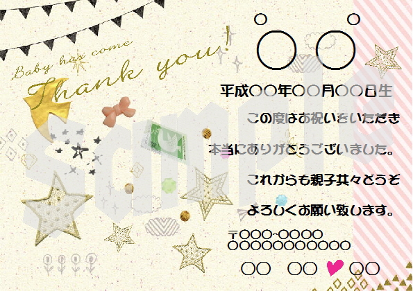 お子様のお写真をいれたオリジナルのメッセージカードをお付けいたします。