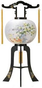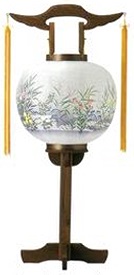 仏前に飾る三本足付きの絹張ち提灯です。仏前の飾る中心に成る提灯で、家紋を入れる場合もございます。